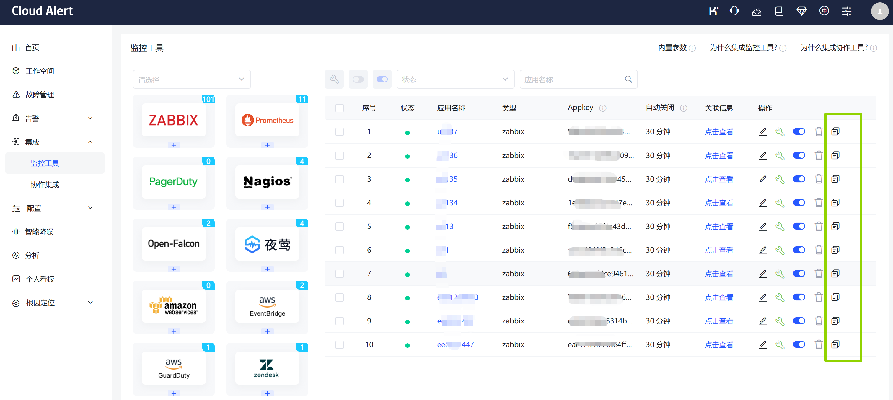 - 入口:集成-监控工具-列表-操作列-增加复制按钮