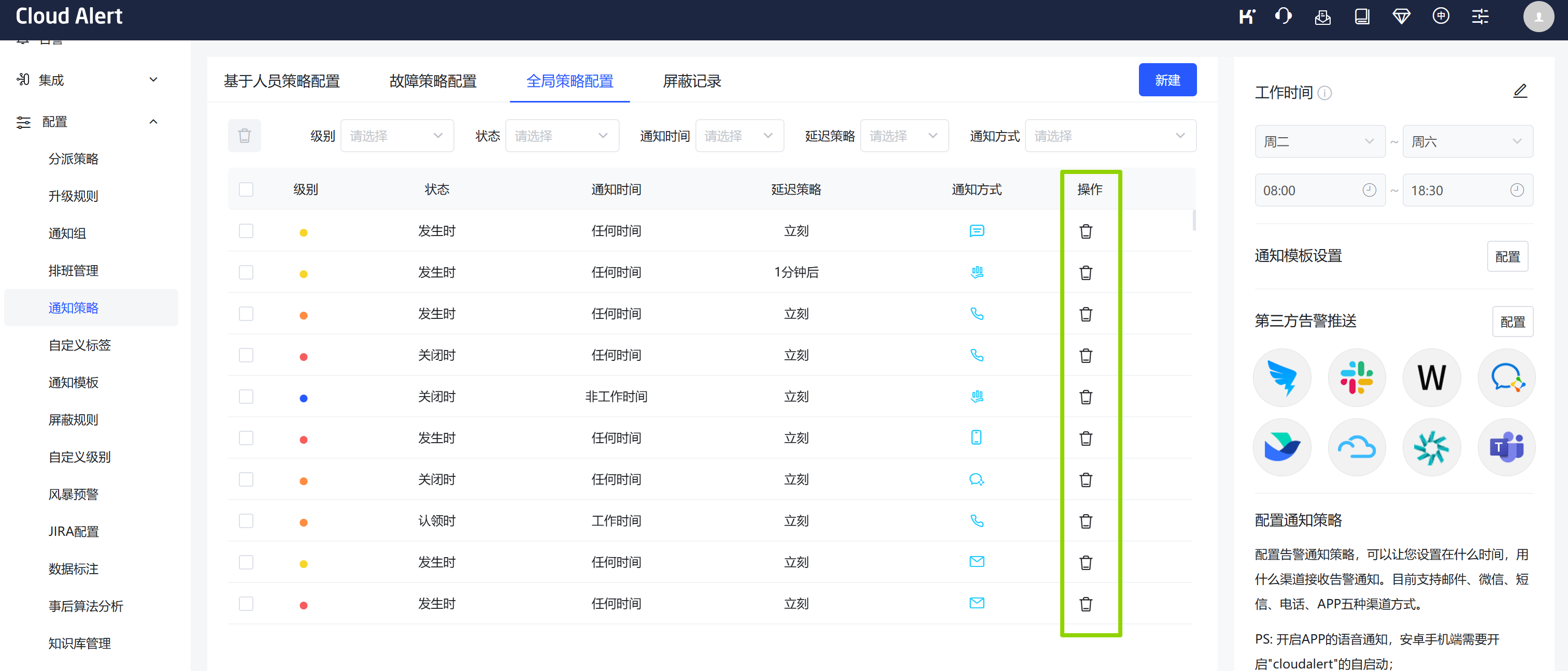 - 入口:配置-通知记录-全局通知策略